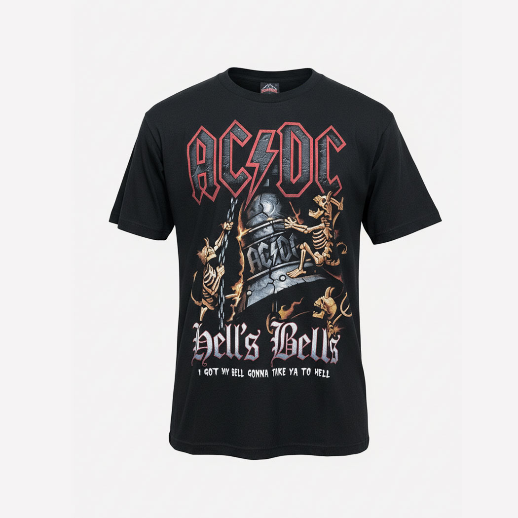 CAMISETA AC/DC HELL´S BELLS GLOW IN THE DARK . Edicion Especial Brilla en la Oscuridad. Gran Calidad de Impresión en Ambos Lados. 100% Algodón. Producto de Importacion.