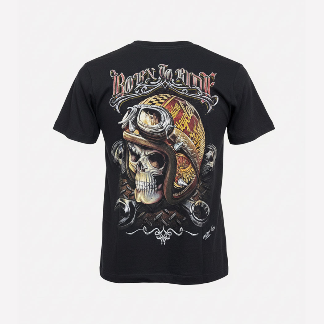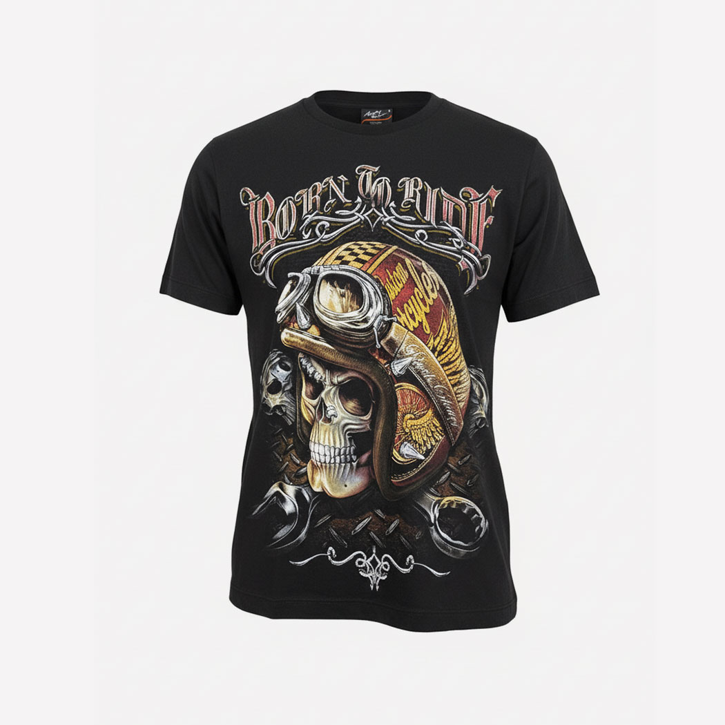 CAMISETA BORN TO RIDE GLOW IN THE DARK . Edicion Especial Brilla en la Oscuridad. Gran Calidad de Impresión en Ambos Lados. 100% Algodón. Producto de Importacion.