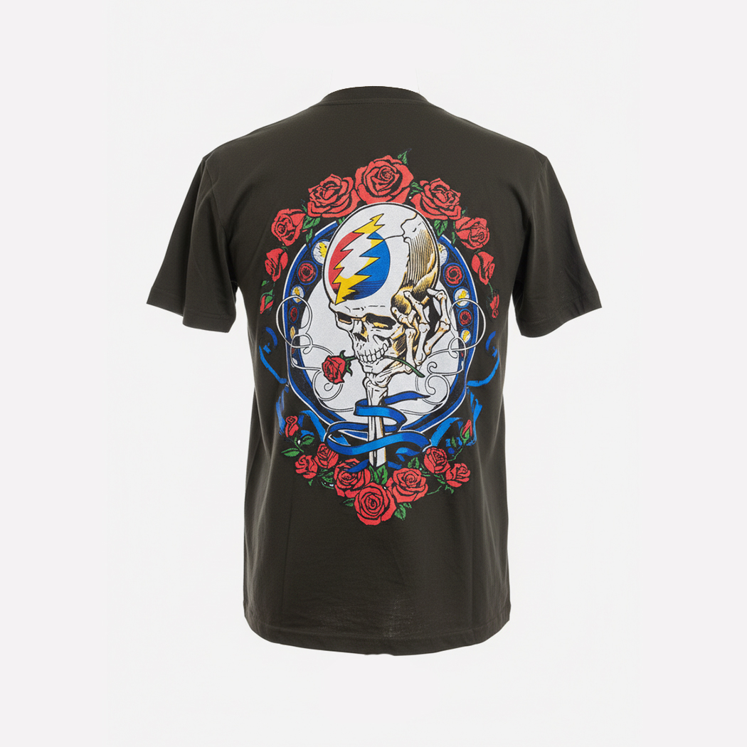 CAMISETA GRATEFUL DEAD – STEAL YOUR FACE VINTAGE . Impresión por Ambos Lados de Gran Calidad. Color Verde Militar Estilo Vintage. 100 % Algodón. Producto de Importacion.
