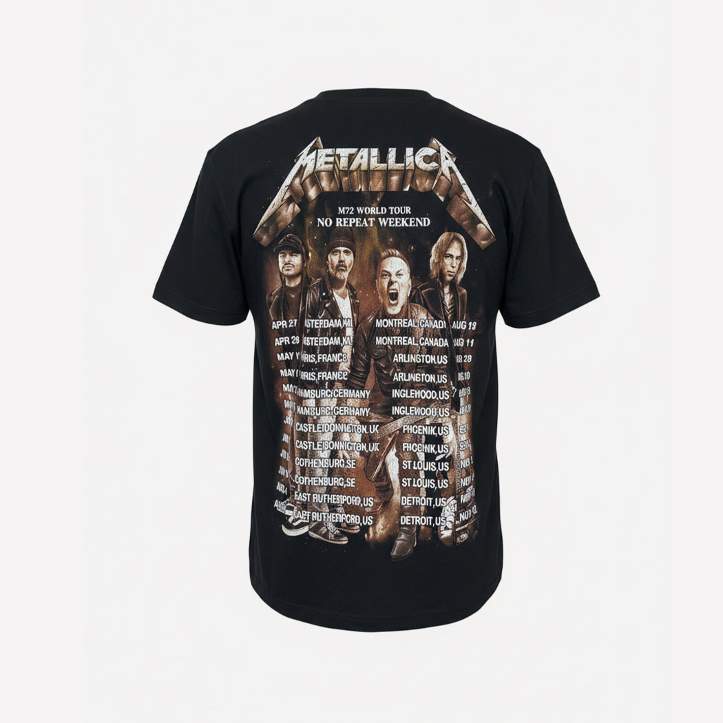 CAMISETA METALLICA M72 WORLD TOUR NO REPEAT WEEKEND GLOW IN THE DARK . Edicion Especial del Tour 2023-2024 Brilla en la Oscuridad. Gran Calidad de Impresión en Ambos Lados. 100% Algodón. Producto de Importacion.