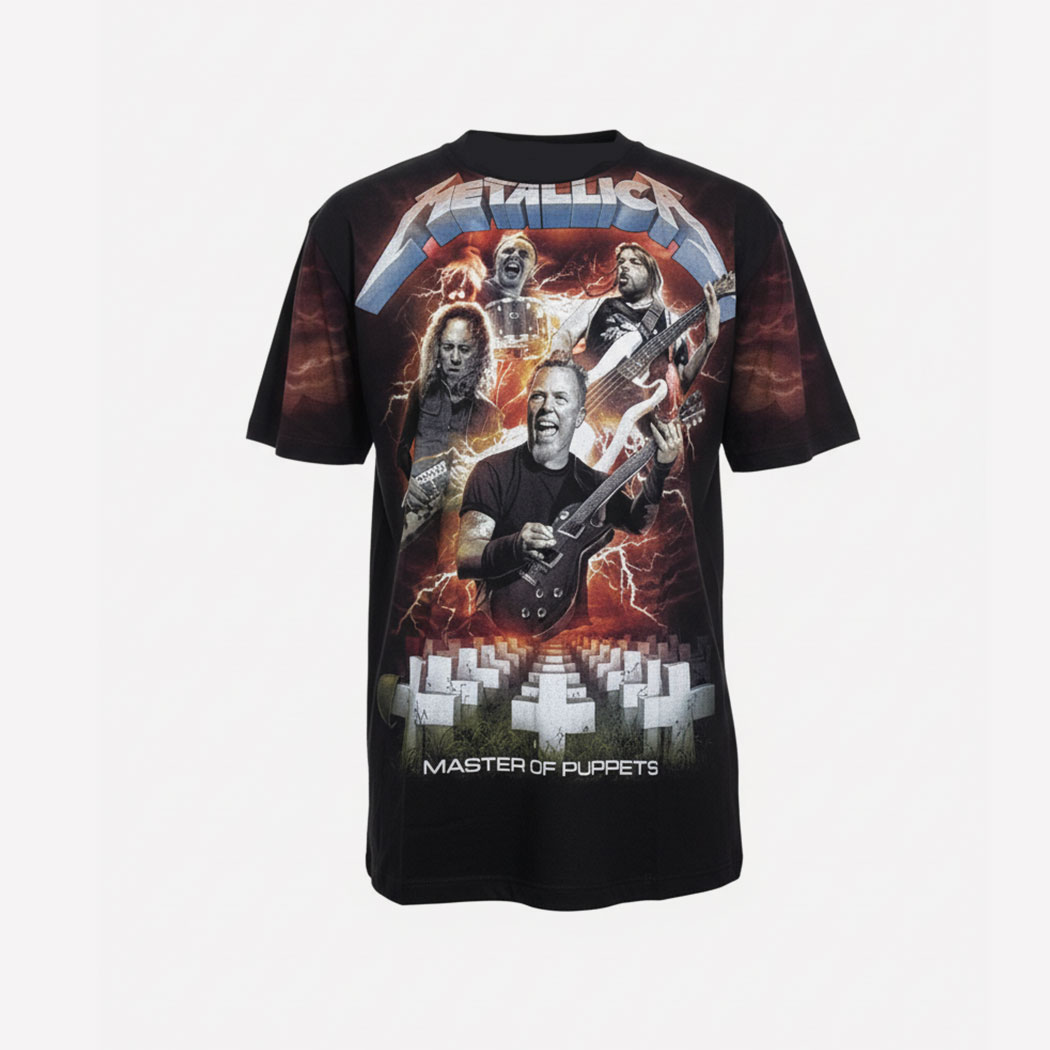 CAMISETA METALLICA MASTER OF PUPPETS BAND / FULL PRINT . Edicion Especial con Gran Calidad de Impresión en Ambos Lados y Mangas. Brilla en la Oscuridad. 100% Algodón. Producto de Importacion.