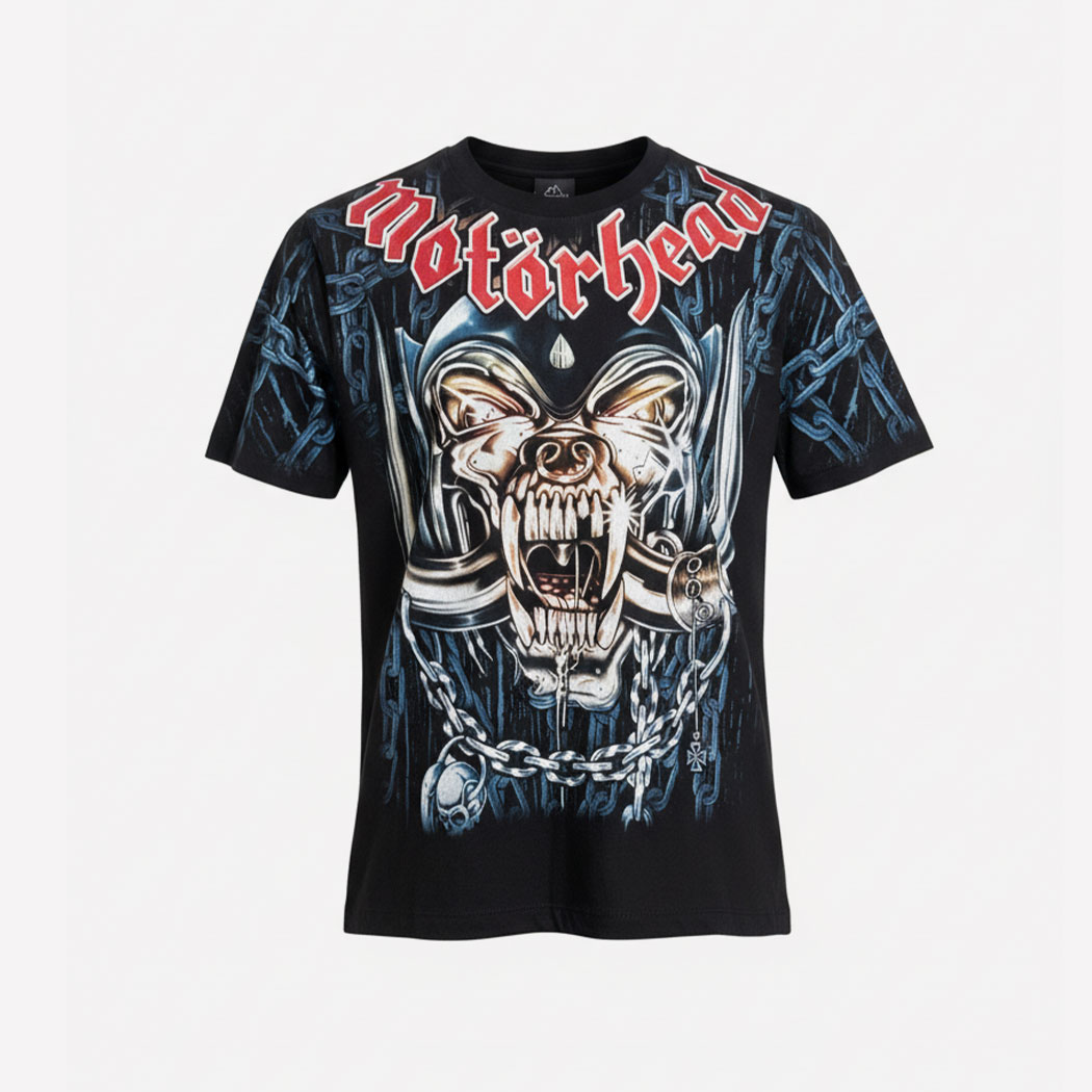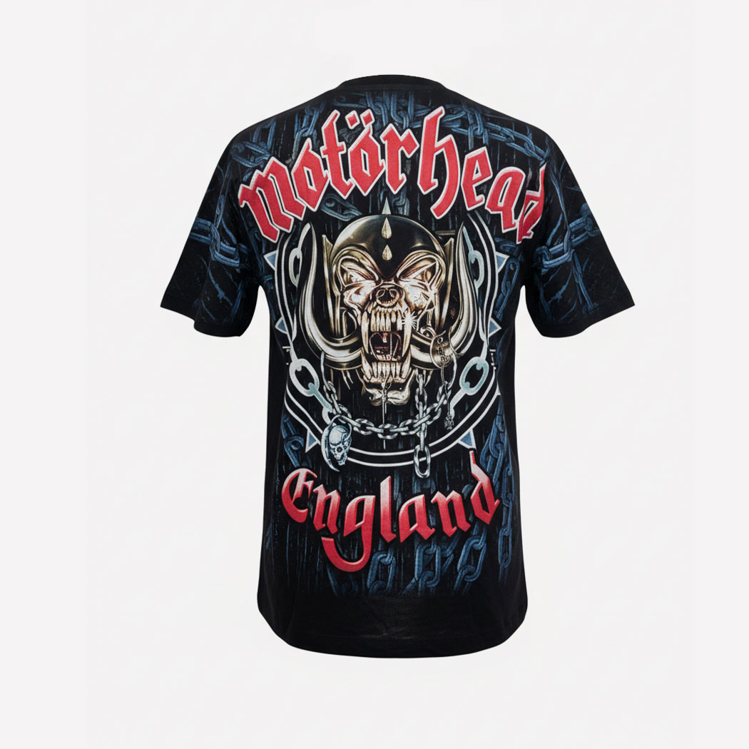 CAMISETA MOTÖRHEAD ENGLAND CHAINS / FULL PRINT . Edicion Especial con Gran Calidad de Impresión en Ambos Lados y Mangas. Brilla en la Oscuridad. 100% Algodón. Producto de Importacion.