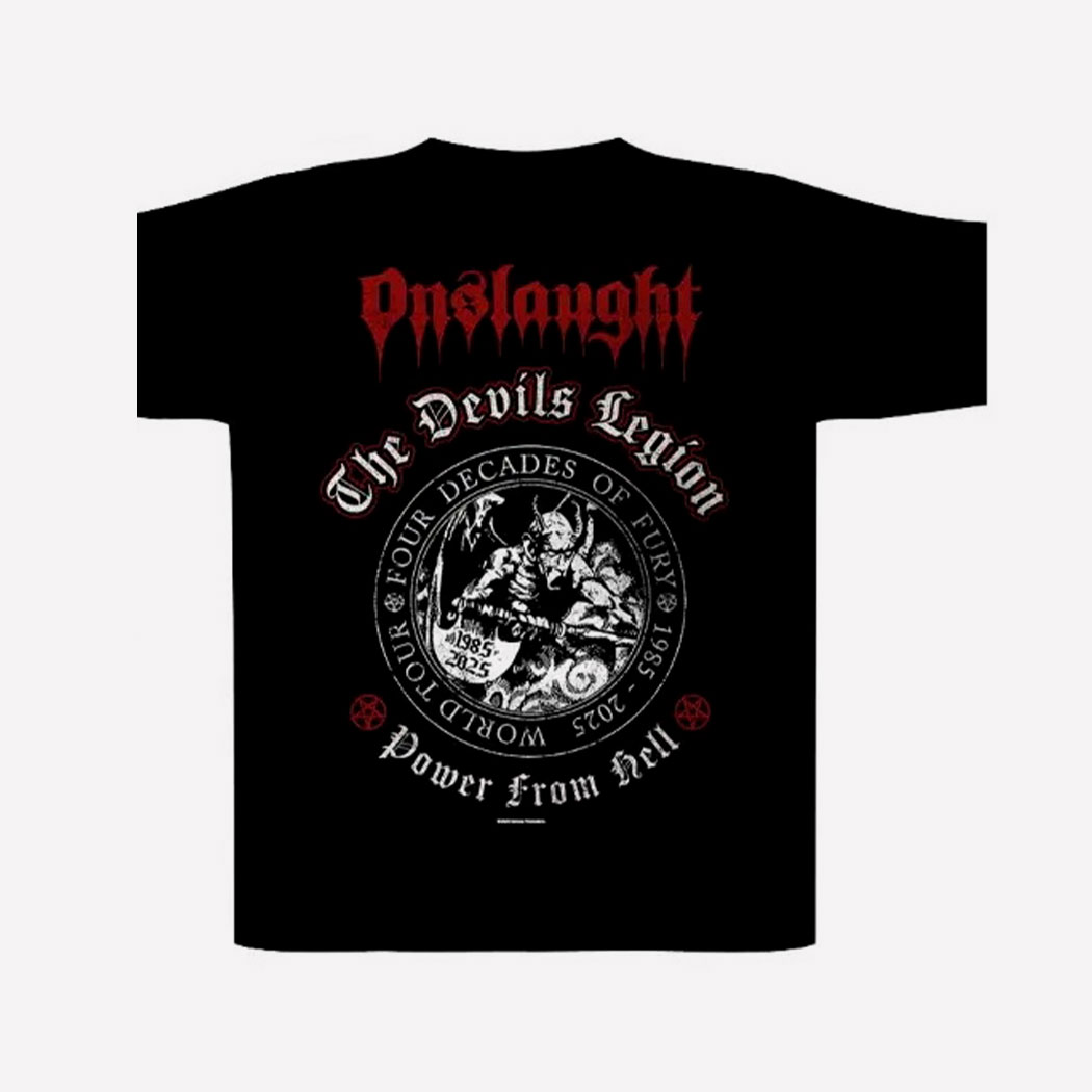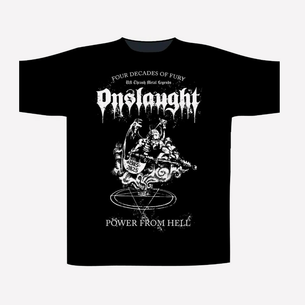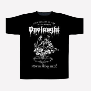 CAMISETA ONSLAUGHT – POWER FROM HELL . Impresión por Ambos Lados de Gran Calidad. 100 % Algodón. Producto Oficial y de Importacion.