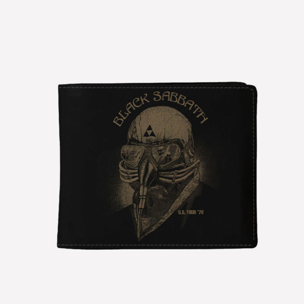 CARTERA BLACK SABBATH – U.S. TOUR 78 . Con Diseño del Logotipo del Tour ´78. En Relieve por Ambos Lados. Capacidad para 8 Tarjetas, Doble Compartimento para Billetes, Una Ventana Transparente y Cremallera para las Monedas. Incluye cadena. Producto de Importacion .