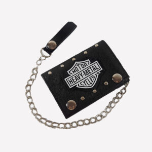 CARTERA CUERO MOTOR HEAVY METAL CYCLES WHITE . Logotipo en Relieve de Gran Calidad en un Lado y Lisa por Detras. Remaches Decorativos. Cierre de Doble Remaches. Interior con Monedero, Tarjetero y Cremallera Oculta para Billetes. Cadena de Acero Incluida de 34cm. Aprox. con tira de Cuero para Enganchar al Pantalon. Producto de Importacion.