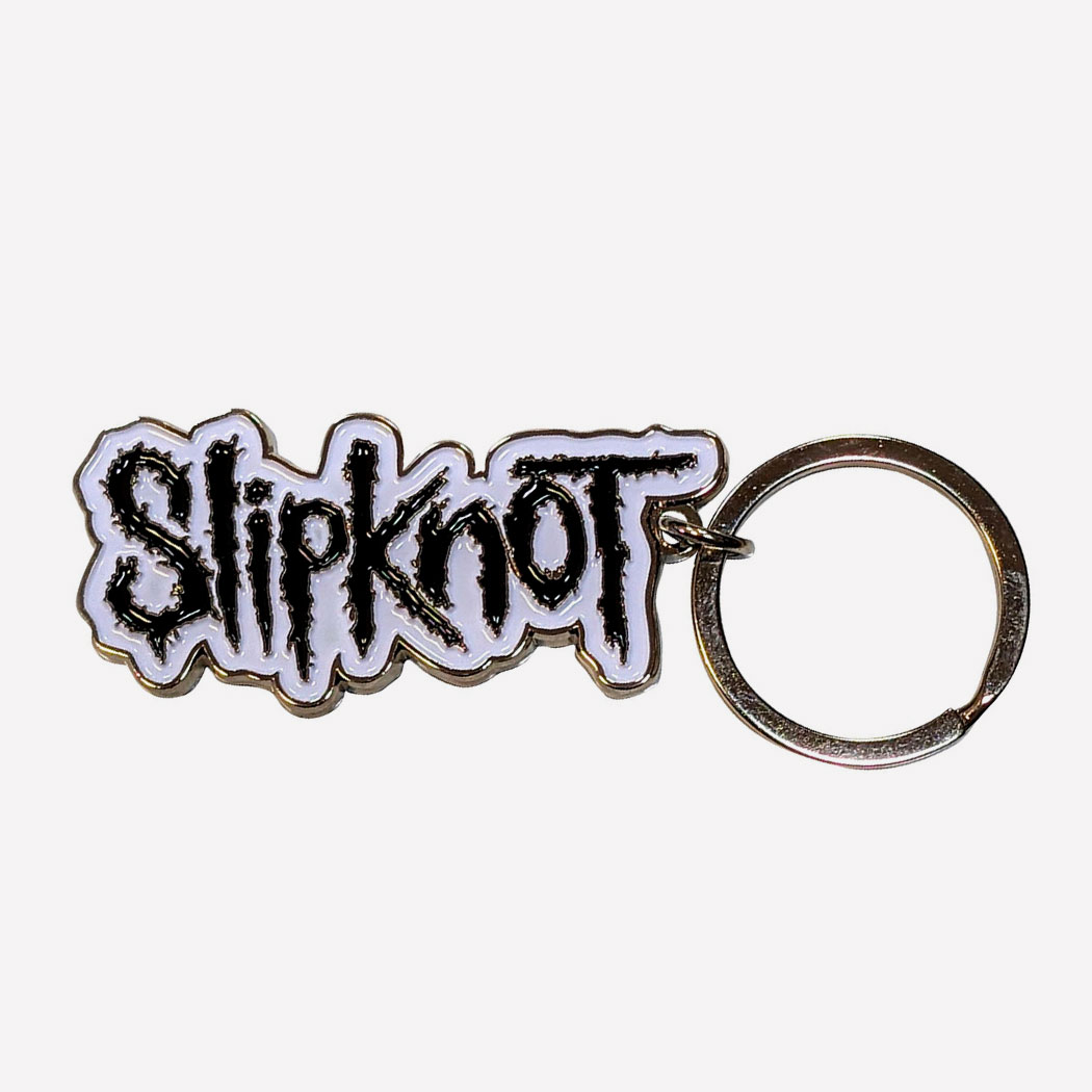 LLAVERO SLIPKNOT BLACK LOGO WHITE BORDER de Metal. Producto Oficial y de Importacion.