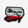 PARCHE SAXON LETRAS ROJAS de Tela Bordado TermoAdhesivo. Producto de Importacion.